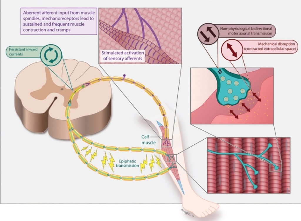 Giuriato G, Pedrinolla A, Schena F, Venturelli M. Muscle cramps: A comparison of the two-leading hypothesis. J Electromyogr Kinesiol. 2018 Aug;41:89-95. doi: 10.1016/j.jelekin.2018.05.006. Epub 2018 May 26. PMID: 29857264.